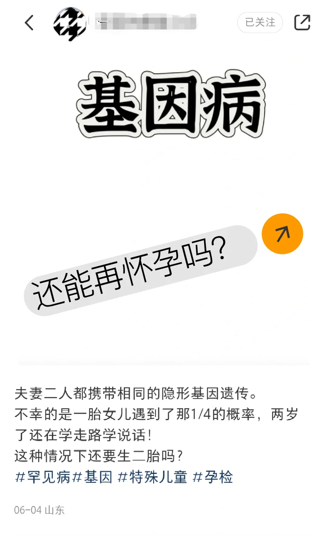 #科学备孕 #试管婴儿那点事 #三代试管 #隐性遗传基因 今天无意中刷到这样一篇笔记,夫妻双方携带相同的隐性遗传基因的概率是比较低的,但还是经常会遇到。一个家庭,有一个不正常的孩子,那